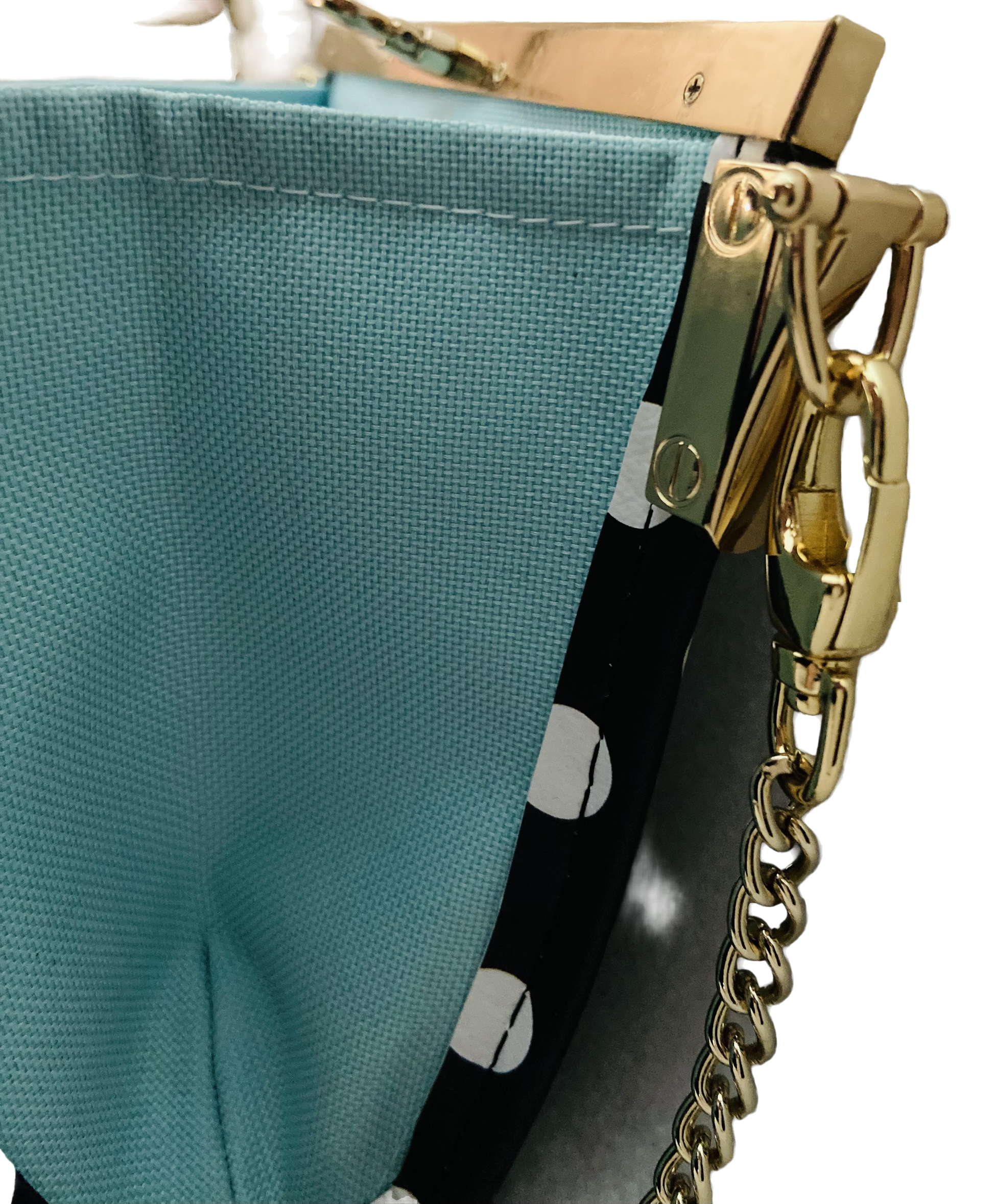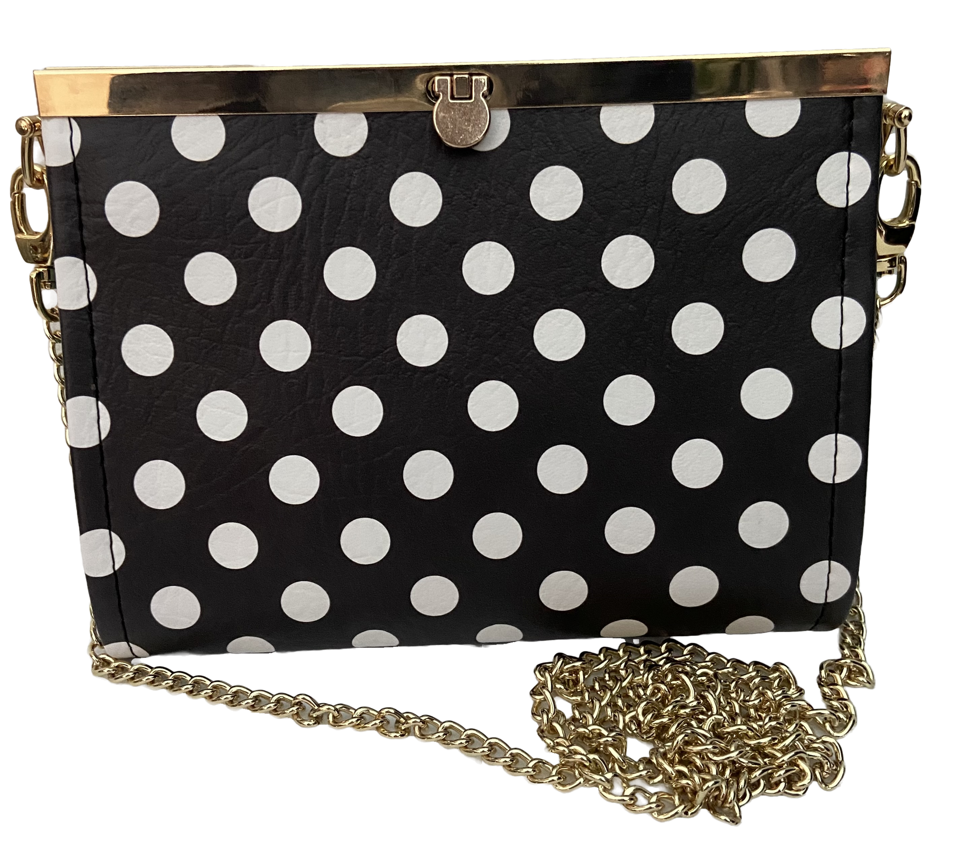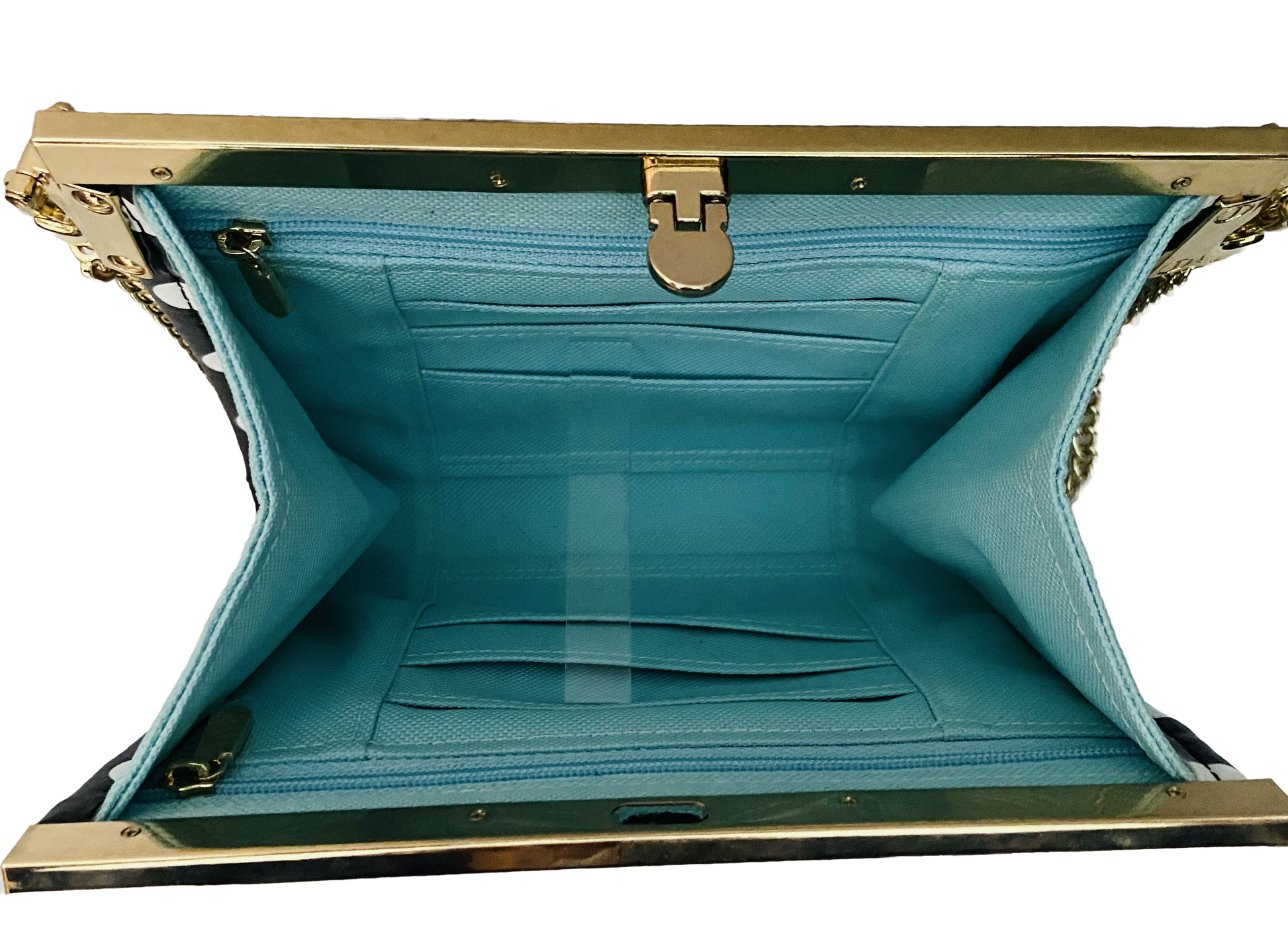 This small clutch with a 44" chain is an elegant wallet with credit card slots and two zippered pockets for change, bills, or receipts. High quality vinyl printed here in the USA with waterproof canvas interior.