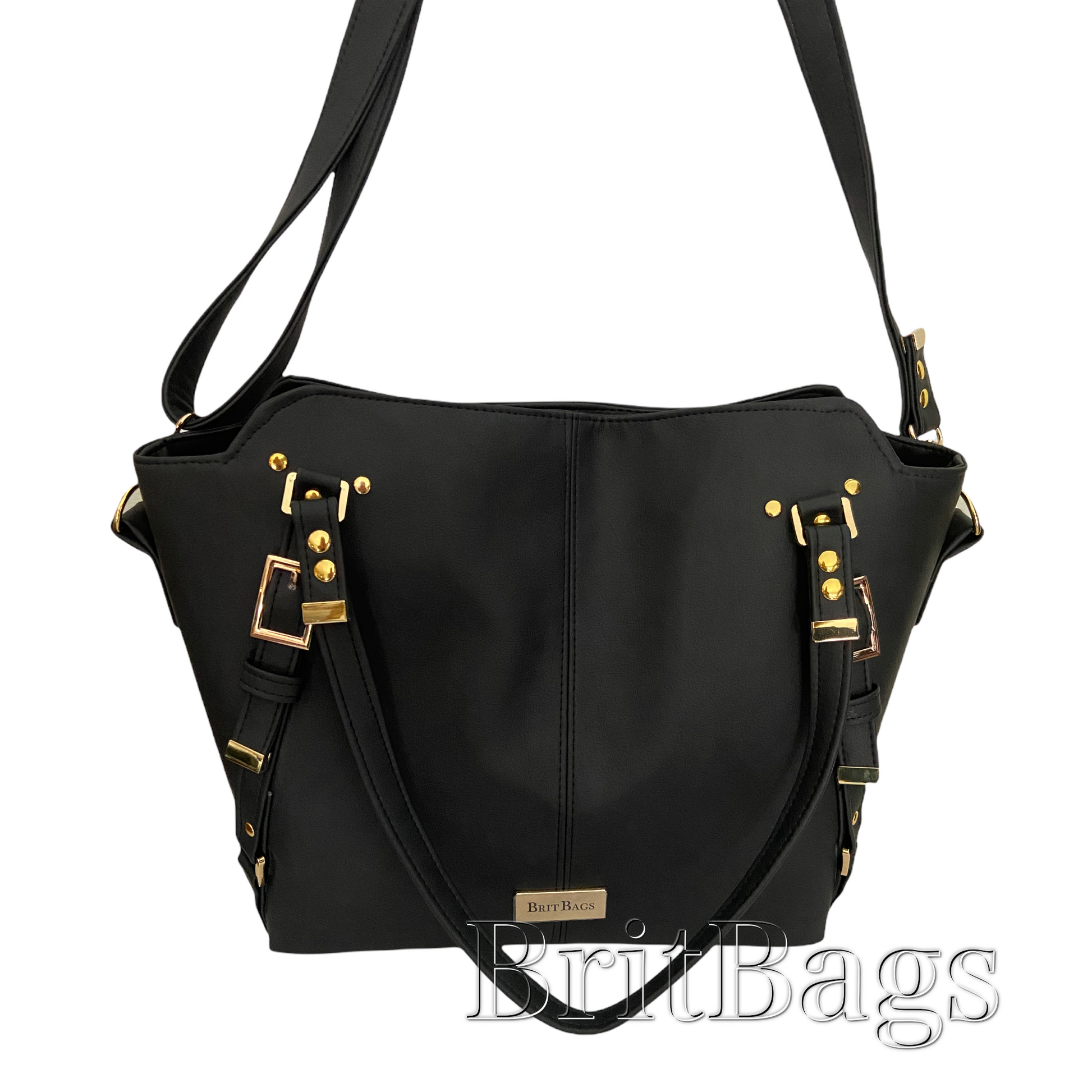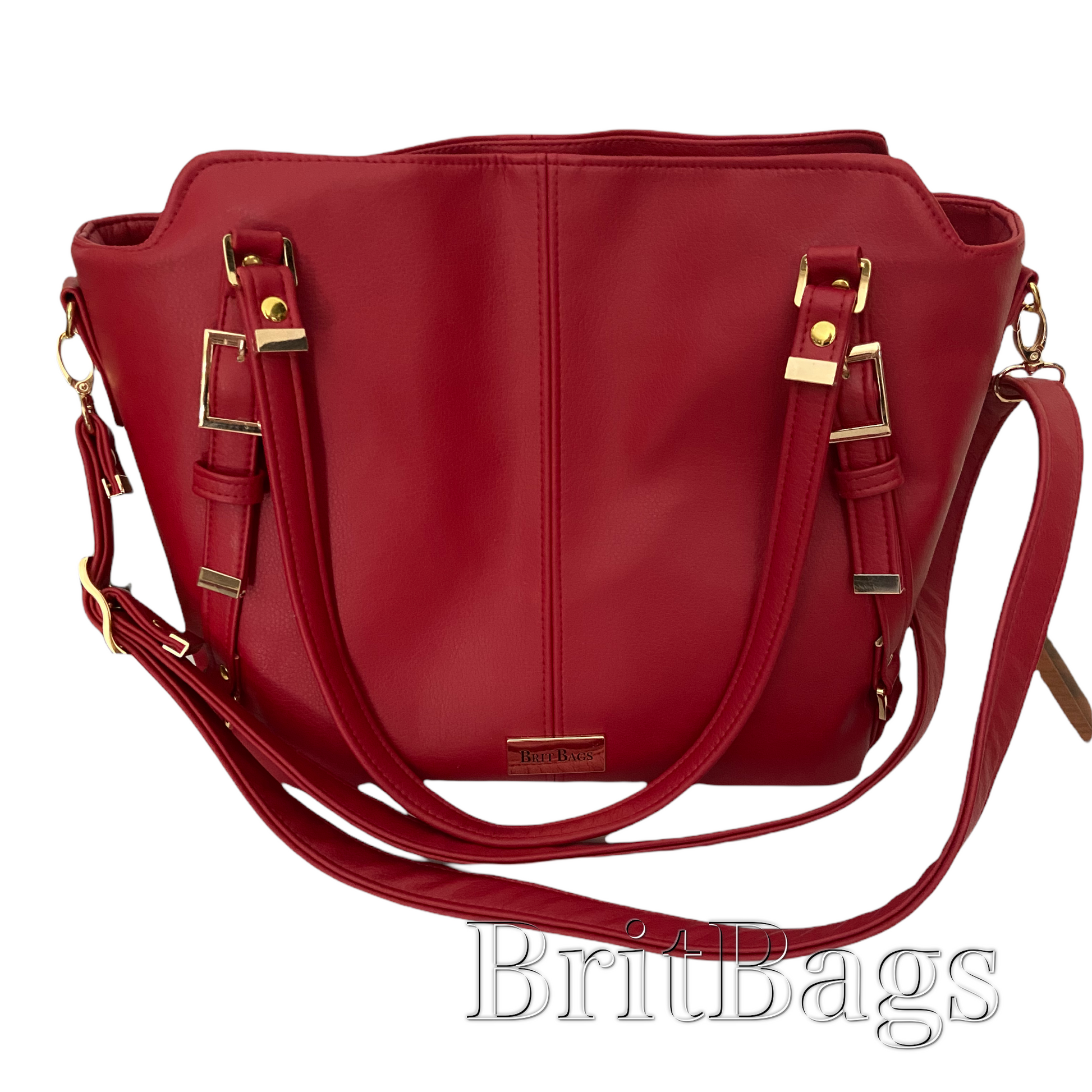 This elegant bag is semi slouchy and can be worn as a shoulder bag or a crossbody with the removeable strap. The bag opens wide to hold a laptop or other large items and has an interior zipper pocket and a slip pocket. High quality faux leather with waterproof canvas lining, gold colored hardware, and magnetic snap closure.